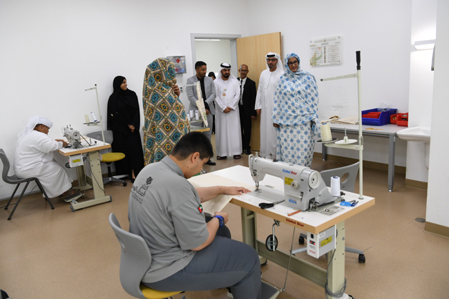 وفي مركز انتاج أصحاب الهمم التابع للمؤسسة بمنطقة الباهية زارت السيدة الدكتورة مريم بنت الداه عدداً من ورش التأهيل المهني بالمؤسسة شملت ورشة الخياطة للبنات والأولاد الذي تعد من المشروعات الرائدة التي يتم من خلالها توفير فرص عمل لأصحاب الهمم من ذوي التحديات العقلية يقوم على تطوير مسارات التأهيل بما يتناسب مع متطلبات سوق العمل،
