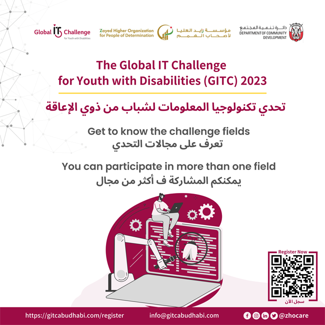 Zayed Higher Organization for People of Determination (ZHO) announced the opening of registration to participate in the Global Information Technology Challenge for People of Determination (GITC) competition, to be hosted by Abu Dhabi next October,